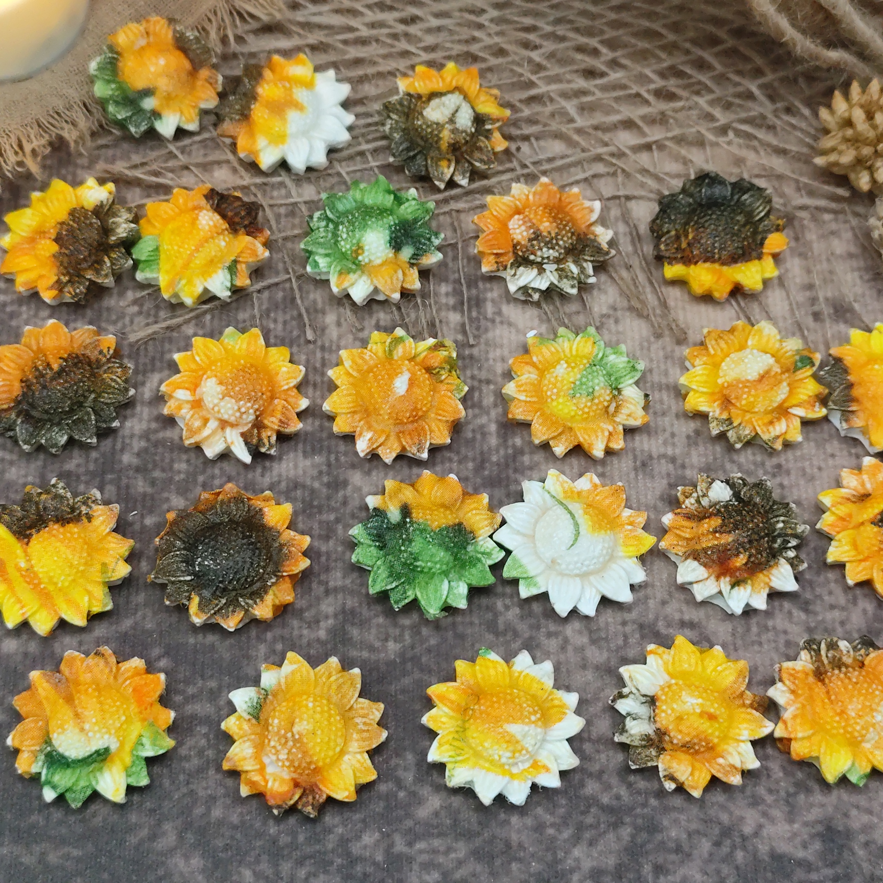 Zonnebloemen die ik heb bewerkt met de servet techniek.